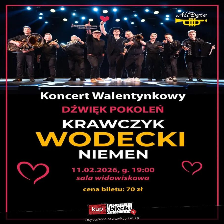 bilety: ALLDĘTE to wyjątkowy brass band, który od 2018 roku zachwyca publiczność zarówno w Polsce, jak i za granicą. Składający się z dziewięciu muzyków, zespół specjalizuje się w nowoczesnych aranżacjach klasyków polskiej muzyki rozrywkowej oraz autorskich kompozycjach. Na swoim koncie mają dwie płyty: EP-kę Przestrzeń (2021) oraz autorski album Czas (2023) z 11 oryginalnymi utworami. Zespół co roku wykonuje koncerty w całym kraju. W 2024 roku otrzymali zaproszenie do udziału w amerykańskim festiwalu Taste of Polonia, a ich koncerty w Chicago spotkały się z entuzjastycznym przyjęciem polskiej publiczności za oceanem. Występy na jednej scenie z takimi legendami jak Krzysztof Cugowski, Elektryczne Gitary czy Trubadurzy przyciągnęły setki nowych fanów, którzy zostali oczarowani energią i charyzmą AllDęte. W 2025 roku odbyli trasę koncertową dla Polonii w Teksasie. ALLDĘTE artyści: Jakub Wojsyk, Tobiasz Bała, Dominik Troczka, Leszek Gliński, Wiktor Wojsyk, Michał Włodarczyk i inniALLDĘTE to wyjątkowy brass band, który od 2018 roku zachwyca publiczność zarówno w Polsce, jak i za granicą. Składający się z dziewięciu muzyków, zespół specjalizuje się w nowoczesnych aranżacjach klasyków polskiej muzyki rozrywkowej oraz autorskich kompozycjach. Na swoim koncie mają dwie płyty: EP-kę Przestrzeń (2021) oraz autorski album Czas (2023) z 11 oryginalnymi utworami. Bilety do nabycia na: KupBilecik.pl |